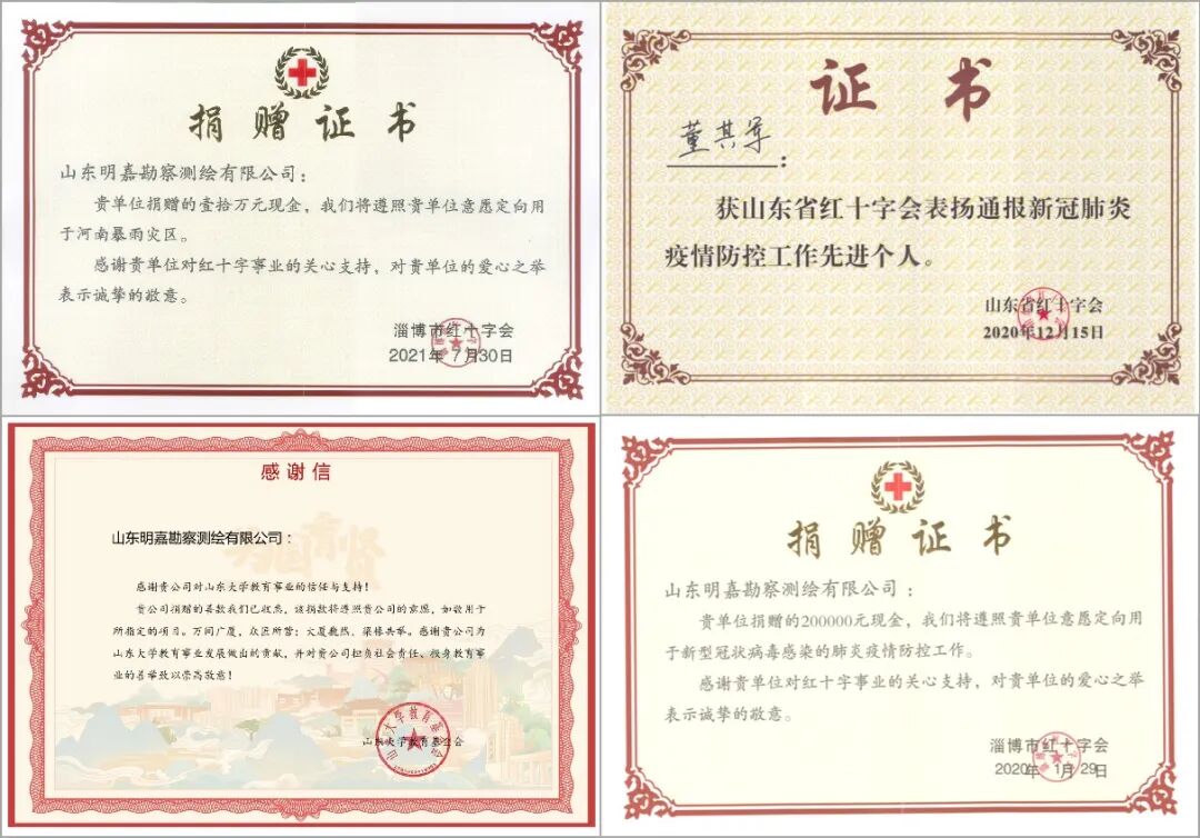 公司内部组织了100周年党建活动,与临淄、淄川、高青等自然资源系统联合举办了党庆活动,并第一时间向河南灾区捐款10万元助力抗洪和灾后重建,向山东大学捐款助力教育事业,向乡村数次捐款,关爱老党员等,体现了公司的社会担当,获得了山东省红十字会的表彰。